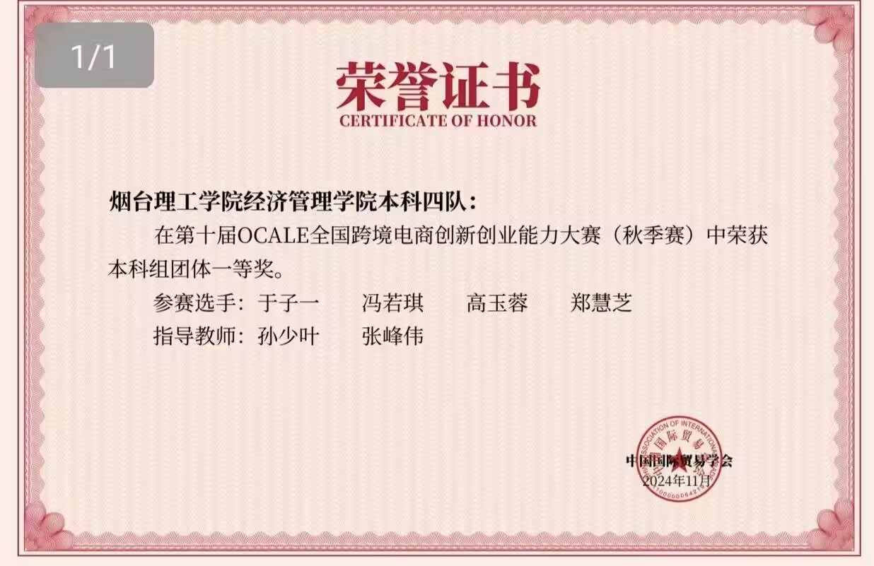在学业上,身为国际经济与贸易专业的员工,于子一始终秉持“勤学慎思,求实创新”的原则,以饱满的热情投身专业学习。课堂上,她注重知识的逻辑体系与关键要点,善于归纳总结;课后,她广泛查阅行业报告与学术文献,延伸学习深度与广度,将零散知识融汇为系统框架。凭借持续的钻研与扎实的积累,她的专业成绩始终名列前茅,综合测评多次获得优秀。