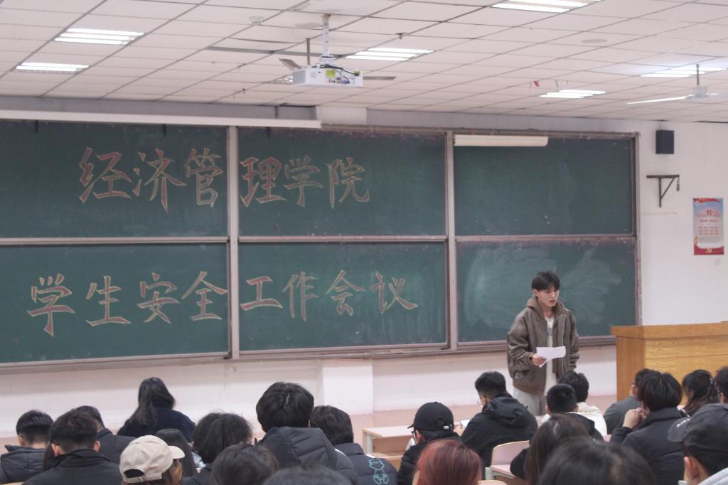 为进一步加强员工宿舍安全管理,夯实校园安全防线,营造文明、稳定的住宿环境,11月13日晚,太阳成集团tyc9728在二教115召开员工安全工作会议。会议由25级辅导员刘禹辛老师主讲,各班班长、团支书及相关员工干部参加。