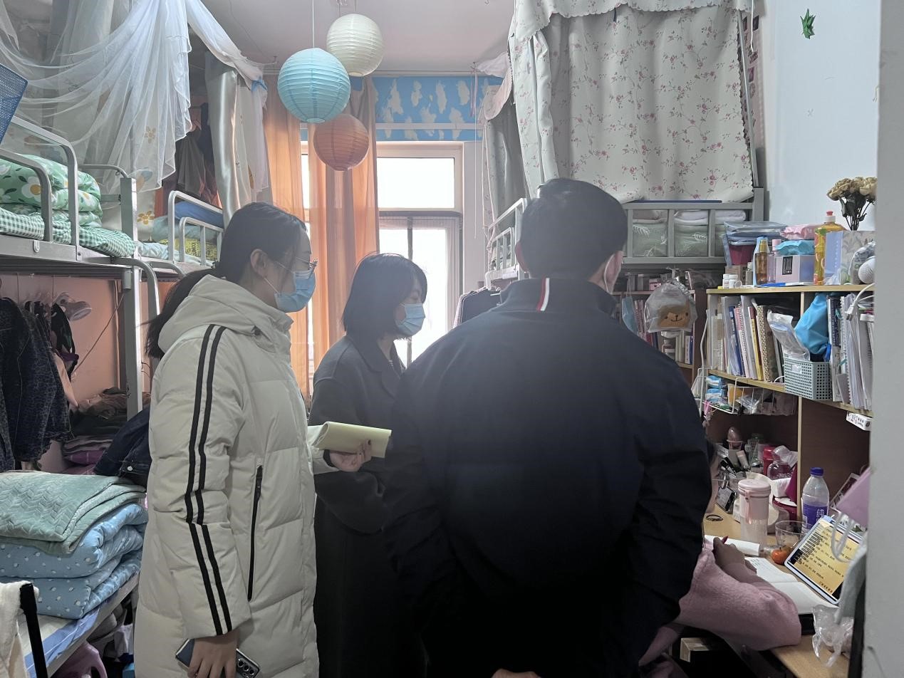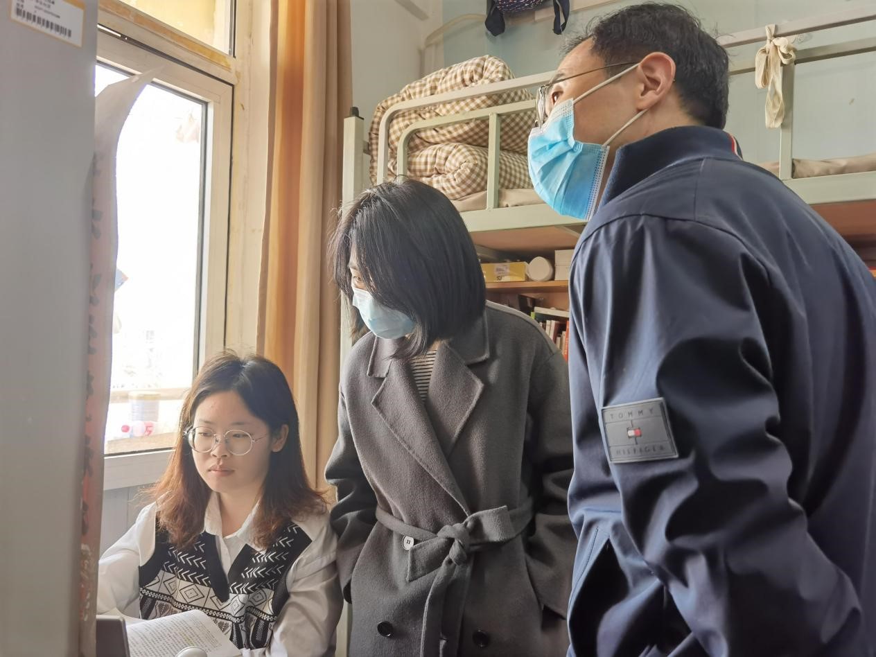 3月14日,公司党总支书记高照龙、副经理殷晓彦、辅导员张晓云、仪梦瑶、于东走访慰问员工宿舍,深入了解疫情防控期间同学们的学习生活和精神面貌。