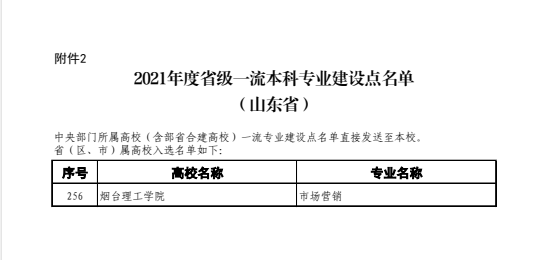 6月8日,教育部办公厅发文公布了2021年度省级一流本科专业建设点名单(山东省),太阳成集团tyc9728市场营销专业获批省级一流本科专业建设点。