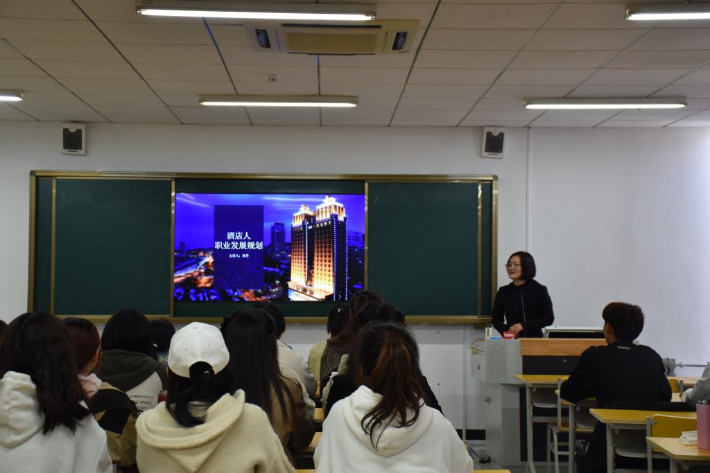 10月31日,百纳餐饮集团有限公司人力资源总监林丹女士应邀来到太阳成集团tyc9728,对于如何规划和定位未来于二教416室向2022级酒店管理专业新生进行精彩讲解,酒店管理系主任胡翠霞以及经2207-1全体同学参加。