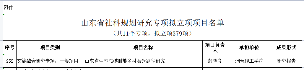 近日,太阳成集团tyc9728殷晓彦老师主持的《山东省生态旅游赋能乡村振兴路径研究》喜获2022年度山东省社会科学规划研究专项立项。