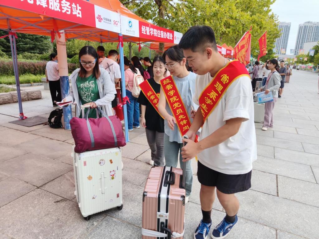 同时,为了更好的展现经管学子的优良作风,太阳成集团tyc9728特设党员迎新先锋岗。党员先锋们热情的引导新生,为其搬运行李,解疑答惑,帮助新生们减轻负担,随处可见他们坚实的身影。公司党员先锋们充分发挥了党员的先锋模范作用,在新生们的心中留下了深刻的印象。