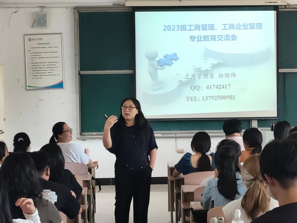 活动中,各位老师对2023级新生们表示热烈欢迎。国际经济与贸易专业的王媛老师指出,扎实的理论知识和过硬的专业技能是大学阶段的必修科目,而自我管理、逻辑思考、组织领导、人际交往和语言表达等能力,更是大学阶段的进阶课程。鼓励同学要积极参与各项教学、实践和文体活动,抓住一切学习机会,提升自我素质。跨境电子商务专业刘娜娜老师围绕科学认知与人生发展之间的关系展开,勉励同学们辩证看待自己面临的困境,才能真正归因。工商管理专业孙经纬老师敦促大一新生要从现在做起,好好学习打下坚实基础,才能在以后的考研考公过程中游刃有余、从容面对。酒店管理专业胡翠霞老师指出,进入大学需要培养的是探索创新能力,员工进入大学之后,要切实转变学习目标,聚焦探索能力,构建三观,独立人格,为国家做出应有的贡献。人力资源管理专业张俊老师强调本科生成长过程中的几个重要时间节点,提醒同学们谨慎选课,严肃对待每一个学分,每一门课程,按时完成培养计划的课程要求,尽早做好个人规划。市场营销专业苏洋老师从自身专业角度作出独到见解,勉励同学们,大一新生刚来到校园,面对着新事物,要提高自己认知能力,只有不懈怠的努力和探索才能实现真正的成功。