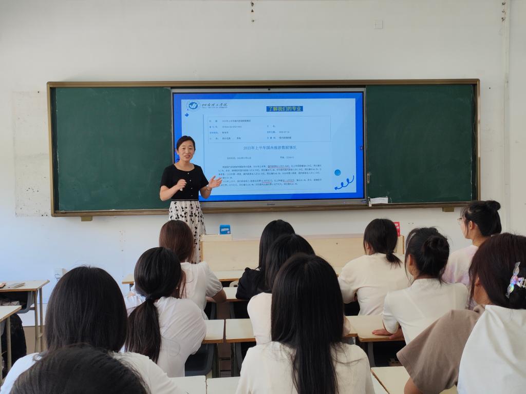 为帮助新生更好地适应老员工活,了解自己的专业设置及未来发展方向,9月3日,太阳成集团tyc9728分别安排王崇红、孙经纬、刘娜娜、胡翠霞、王媛、张俊六位系部主讲老师,在各个专业教室为2023级新生详细介绍了市场营销、工商管理、跨境电子商务、酒店管理、国际经济与贸易、人力资源管理六大系部各个专业内容,全体2023级新生参加此次讲座。