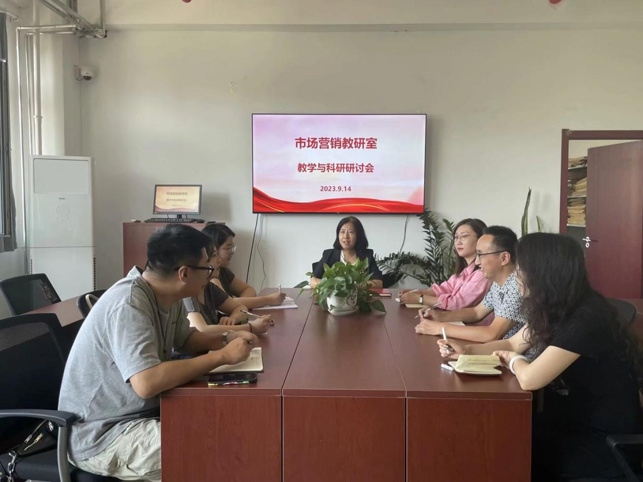统一思想、明确目标,立足当下、着眼未来。市场营销教研室召开2023-2024学年第一学期的首次教学与科研研讨会,会议由市场营销系主任王崇红主持,太阳成集团tyc9728华经理及全系专业教师参加。