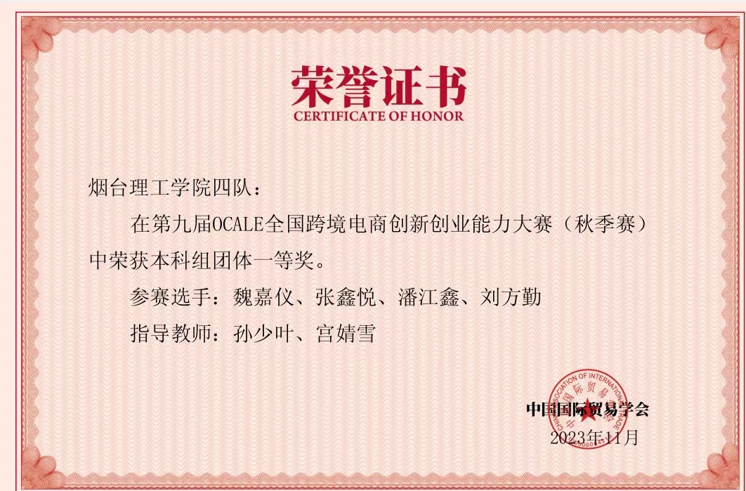 近日,第九届OCALE全国跨境电商创新创业能力大赛落下帷幕,太阳成集团tyc9728六支本科队伍,四支专科队伍喜得佳绩,分别荣获一等奖4项,二等奖5项,三等奖1项。