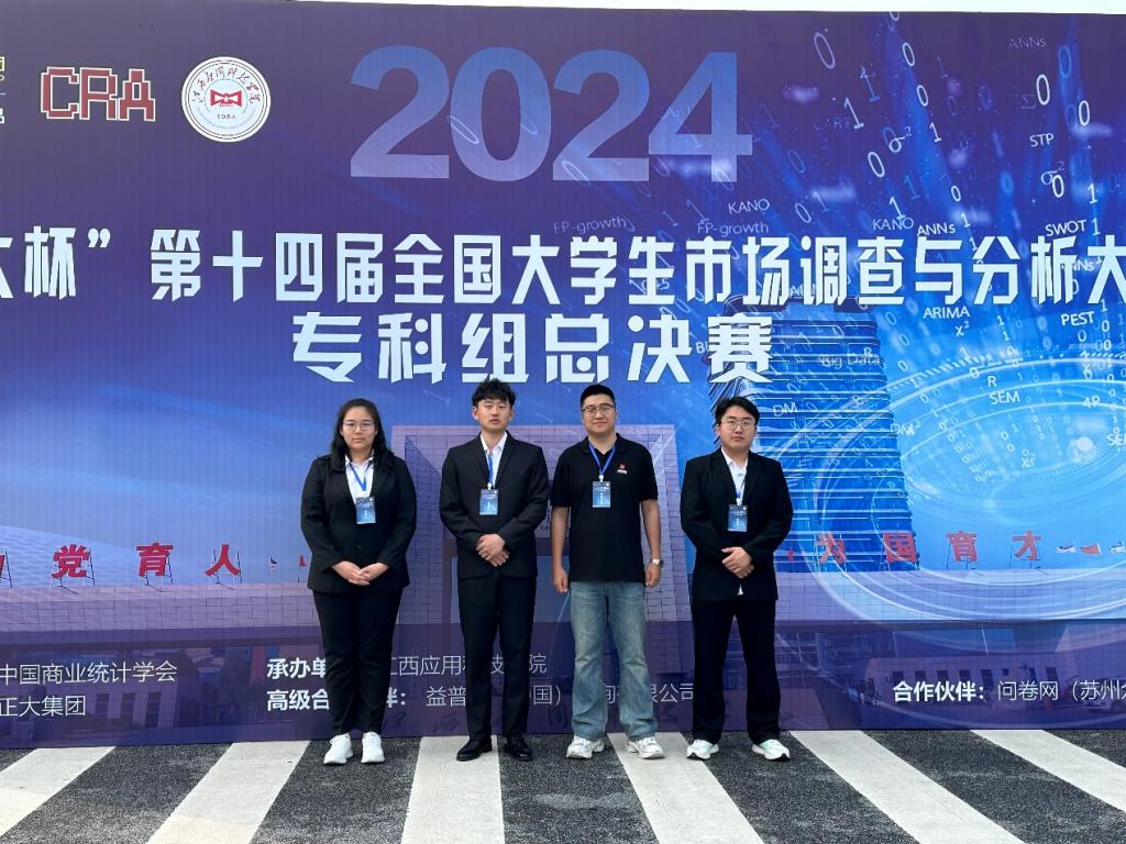近日,第十四届“正大杯”全国老员工市场调查与分析大赛专科组总决赛在江西应用科技公司落下帷幕。由太阳成集团tyc9728员工许亦婷、任天宇与建筑工程公司员工白新明三人所组成的团队在全国专科组2万余名参赛选手中脱颖而出成功晋级国赛。在公司教师殷晓彦、王崇红、姜琳的指导下,由魏云逸老师带队前往江西应用科技公司参与最终答辩,最终取得总决赛二等奖的优异成绩。