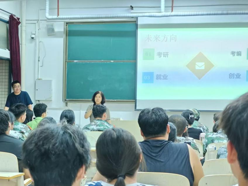 公司副经理王崇红副教授深入讲解了员工们未来的四大发展方向:考研、就业、考公和考编,帮助大家尽快找到方向并为之努力,同时也详细介绍了专业相关的各类竞赛及过往员工获奖经历,帮助同学们在未来更好的协调学习、比赛与生活之间的关系,鼓励同学们积极参加公司各类活动,提升自己的实践能力和创新精神。