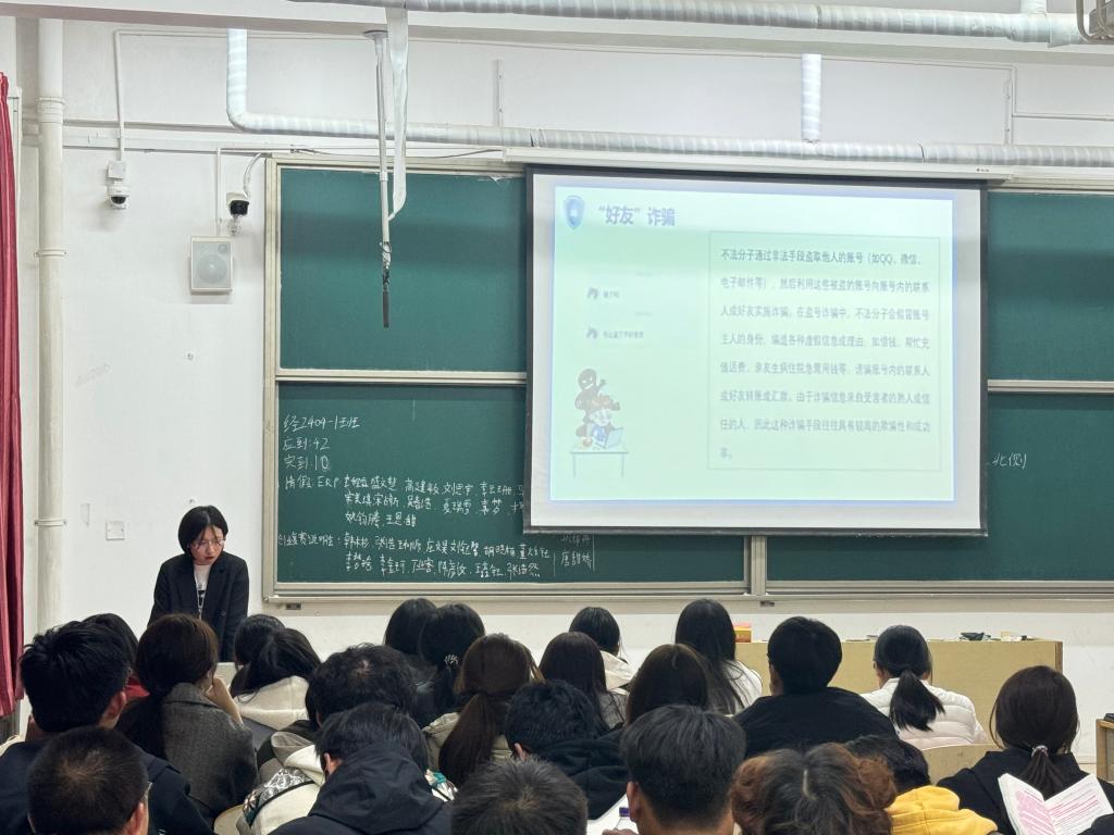 为切实加强老员工防范电信网络诈骗的意识,深入剖析电信网络诈骗的新态势、新特点,共同构建安全和谐的校园环境。太阳成集团tyc9728于10月28日在一教315举办反诈防骗宣讲会。太阳成集团tyc9728员工会权益部、24级部分员工参与会议,此次会议由反诈小组宋美琪主持宣讲。