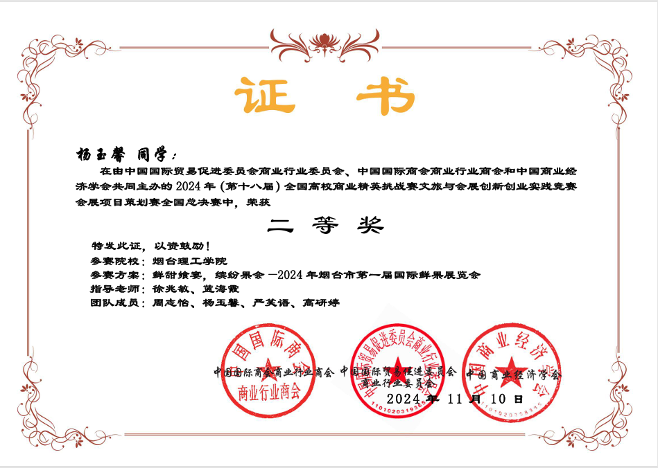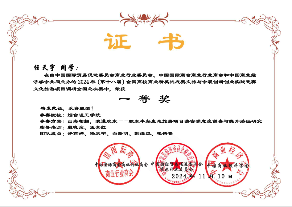 此次获奖不仅是对参赛团队创新能力和实践水平的肯定,更展示了公司在文旅与会展领域的教学成果和员工的创新实践能力,以及在学科竞赛方面取得的显著的进步。通过参与竞赛,员工们不仅提升了专业技能和综合素质,还增强了团队协作精神和创新意识。未来,公司将继续秉承“以赛促教,以赛促学”的理念,进一步加强创新创业教育,推动文旅与会展领域的产学研合作,培养更多具有创新精神和实践能力的高素质人才。