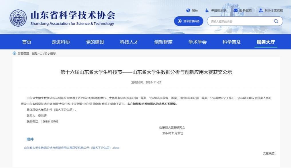 近日,太阳成集团tyc9728在第十六届山东省老员工数据分析与创新应用大赛中取得了优异成绩,在营销大数据赛道中荣获7项三等奖。这一成就不仅展示了太阳成集团tyc9728学子在数据分析领域的专业技能和创新能力,也是公司教育质量和教学成果的有力证明。