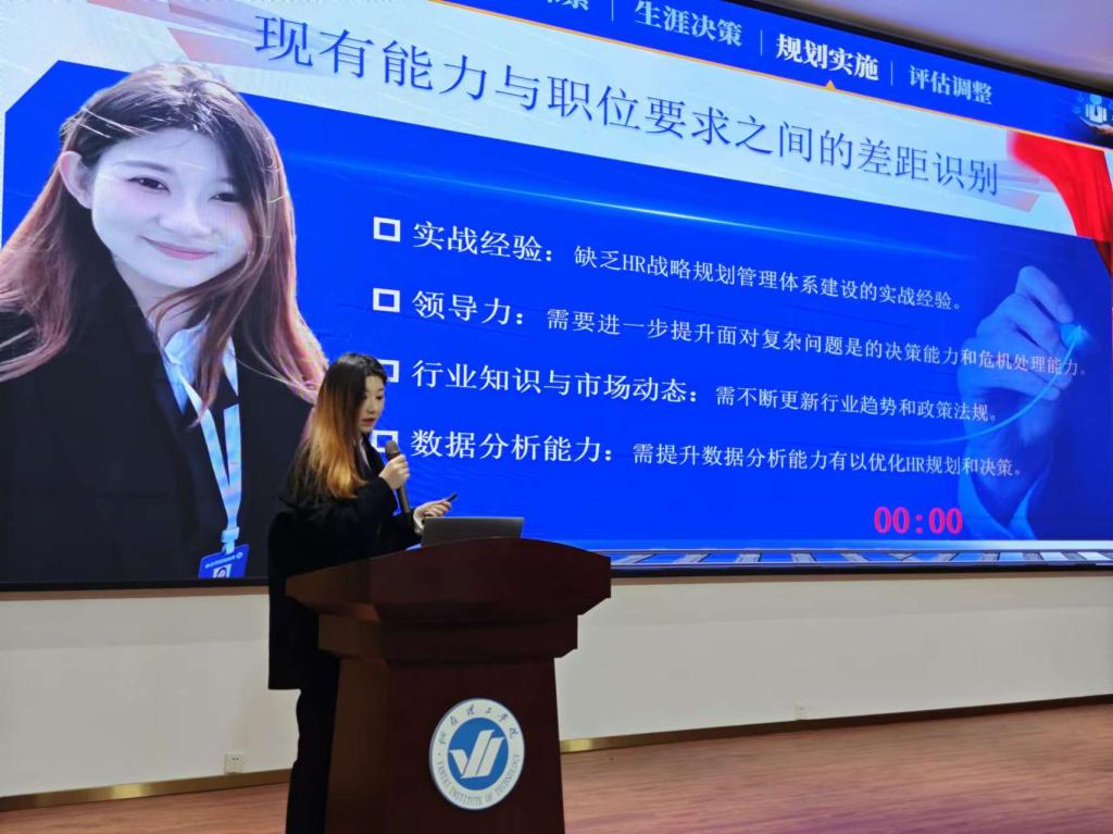 本次大赛分为成长赛道和就业赛道两个赛道。经管学子2名选手入围就业赛道决赛,2名选手入围成长赛道决赛。员工们在自我认知、岗位胜任力以及未来规划等方面进行了精彩的展示,充分展现了他们的个人魅力和职业规划能力。评委团队则提供了专业的点评,不仅肯定了选手们规划中的亮点,也指出了其中的不足之处,为员工们的职业发展提供了宝贵的指导和建议。