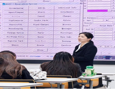 讲座由酒店管理系专任教师周春霖、徐兆敏主持,课程围绕“理论教学与行业实践相结合”的教学目标展开,旨在让员工更加直观地了解现代酒店管理系统的操作逻辑与前台实务流程。