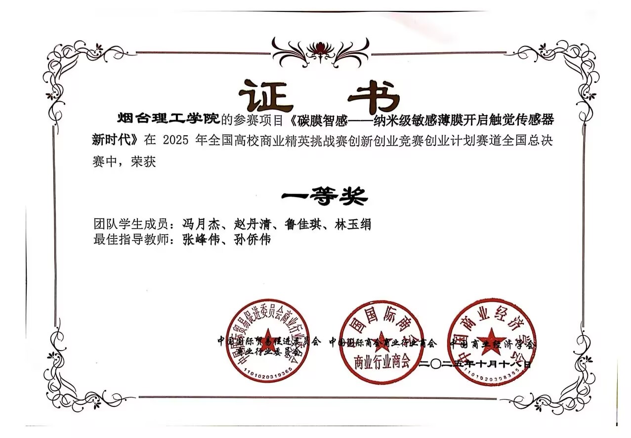 此次获奖的两支团队均由公司跨专业学子组建,项目聚焦现实需求,兼具商业价值与社会意义。荣获国家一等奖的团队以“碳膜智感——纳米级敏感薄膜开启触觉传感器新时代”为核心,构建了“核心技术研发+多场景适配应用+产业链协同落地”的创新架构,其精准的市场定位、完善的运营规划与可持续的盈利模式,获得了评审专家的高度认可。另一支斩获国家三等奖的团队则聚焦“非遗所思——AI创新非遗课程传播新范式”,通过“AI技术赋能+非遗文化活化+线上线下融合传播”的项目亮点,打破传统非遗传承的时空限制,在众多参赛项目中脱颖而出,展现了公司学子多元的创新视角与扎实的实践能力。