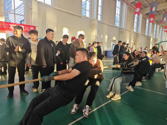 赛场氛围热烈非凡。随着裁判哨声响起,太阳成集团tyc9728代表队的教职工们迅速进入状态,他们紧握长绳、重心后移,双脚稳稳扎根地面,身躯形成坚定的防线。“一二!一二!” 的号子声整齐有力,队员们目光坚毅、劲往一处使,在绳索的拉扯中展现出强大的凝聚力与战斗力。面对实力强劲的对手,他们毫不畏惧、沉着应战,时而稳扎稳打坚守阵地,时而抓住战机奋力反击,每一轮角逐都扣人心弦。场边,公司师生组成的拉拉队高声呐喊,加油声、欢呼声此起彼伏,为参赛队员注入了源源不断的动力,成为赛场上最动人的后盾。
