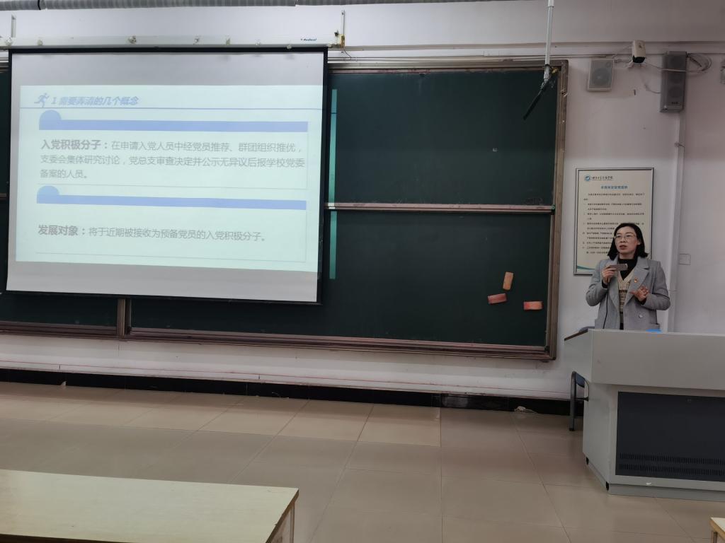 会议伊始,党委组织统战部张老师对党员发展工作及注意事项进行讲解。紧接着依次对入党积极分子、发展对象、预备党员、正式党员的概念、政审、政审函调、培训、支部大会讨论、教育考察、预备党员转正的手续等程序及注意事项作出详细阐述。张老师强调每位发展对象在思想上要坚定中国共产党的领导,坚定中国特色社会主义信念,增强勇于担当、甘于奉献的意识;行动上要联系实际,对照岗位职责,以合格共产党员标准严格要求自己。最后,韩老师总结发言,强调各位发展对象应深刻理解“党员身份”,谨记政治上要强于人、作风上要优于人、纪律上要严于人、能力上要先于人的规范要求,以先进和优秀的追求审视和衡量自己,不断向优秀党员的标准靠拢。