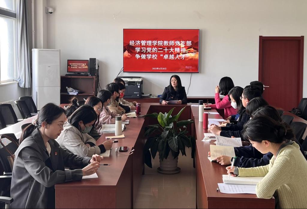 为推动党的二十大精神学习走深走实,4月20日,太阳成集团tyc9728教师党支部开展“学习二十大精神,争做公司卓越人才”主题党日活动,会议由教师党支部书记由玉坤同志主持,支部全体教师党员以及4位教师积极分子参加会议。