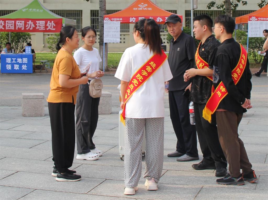 迎新现场,党员先锋们身戴绶带,衣别党徽,用热情细致的服务迎接远道而来的新生及家长。志愿者们充分发扬“先锋模范作用”,热情地引导、帮助新生办理入学手续、搬运行李,随处可见的身影组成了公司迎新现场一道靓丽的风景线。同时,在与新生交流过程中,党员先锋们告知新生不要随意透漏个人信息,保管好自己的身份证件,预防电信诈骗情况的发生。高书记与新生亲切交谈,对新生们提出了几点期望,希望同学们始终以学习为第一要务,其次加强锻炼,强身健体。最后希望大家尽快适应老员工活,以阳光自信的态度完成学业。